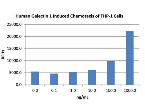 Galectin-1 purity was determined to be greater than 95% as determined by analysis by UV-Spectroscopy at 280nm and by reducing and non-reducing SDS-pAGE. Protein function: May regulate apoptosis, cell proliferation and cell differentiation. Binds beta-galactoside and a wide array of complex carbohydrates. Inhibits CD45 protein phosphatase activity and therefore the dephosphorylation of Lyn kinase. Strong inducer of T-cell apoptosis. [The UniProt Consortium]
