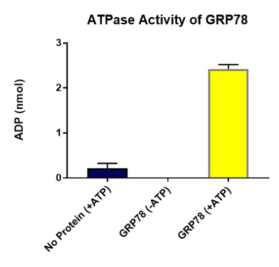 Glucose-regulated protein 78 kDa (GRP78), also known as heat shock 70 kDa protein 5 (HspA5) and immunoglobulin heavy chain-binding protein (BiP), is a glucose-regulated protein that is constitutively expressed in the lumen of the endoplasmic reticulum (ER). It is composed of two functional domains, an N-terminal nucleotide-binding domain that contains an ATP catalytic site and a C-terminal substrate binding domain that binds hydrophobic polypeptides. GRP78 functions as a molecular chaperone, assisting in the translocation of polypeptides from the cytosol into the ER, folding of nascent polypeptides, as well as refolding and preventing aggregation of misfolded proteins. It also plays a role in the ER-assisted degradation (ERAD) and unfolded protein response (UPR) pathways. GRP78 chaperone activity is driven by an ATPase cycle that is regulated by ER-localized DnaJ-like protein co-factors and nuclear exchange factors. Expression of GRP78 is upregulated in response to ER stress caused by viral and bacterial infections as well as various cancers. ER stress can also promote extracellular secretion of GRP78 leading to its anti-inflammatory functions in immunity.Synonyms: BiP, Glucose-Regulated Protein 78, HspA5. Purity: >85% estimated by SDS-PAGE. Source: Active N-terminal His-tagged human GRP78 protein expressed in E. coli. Amino Acids: 2-654 (full length). MW: 74.6 kDa. Formulation: (Request formulation change), 50 mM HEPES, pH 8.0, 150 mM sodium chloride, 1 mM DTT, and 10% glycerol. UniProt Accession #: P11021.