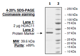 Human HDAC11 (full length) (GenBank Accession No. NM_024827) untagged, MW= 39.6 kDa, expressed in baculovirus expression system.
