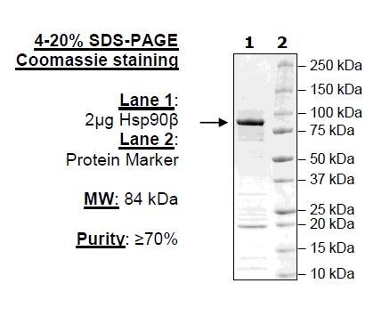 Active human Heat Shock Protein 90 beta (GenBank Accession No. AY359878), full length with C-terminal His tag, MW = 83 kDa, expressed in an E. coli expression system.