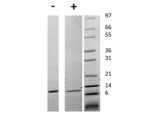 Migration Inhibitory Factor purity was determined to be greater than 97% as determined by HpLC, analysis by UV-Spectroscopy at 280nm, and by reducing and non-reducing SDS-pAGE. Protein function: Pro-inflammatory cytokine. Involved in the innate immune response to bacterial pathogens. The expression of MIF at sites of inflammation suggests a role as mediator in regulating the function of macrophages in host defense. Counteracts the anti- inflammatory activity of glucocorticoids. Has phenylpyruvate tautomerase and dopachrome tautomerase activity (in vitro), but the physiological substrate is not known. It is not clear whether the tautomerase activity has any physiological relevance, and whether it is important for cytokine activity. [The UniProt Consortium]