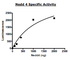 Human Nedd 4 (GenBank Accession No. NM_006154), amino-acids 150-end, with N-terminal DDDDK tag (FLAG) MW= 86 kDa, expressed in a Baculovirus infected Sf9 cell expression system.Useful in conjunction with E1 and E2 for the study of enzyme kinetics, screening inhibitors, and selectivity profiling.
