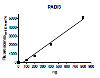 Human PADI-3, also known as Peptidyl arginine deiminase, type III, (GenBank Accession No. NM_016233), amino acids 1-664(end), with C-terminal FLAG-tag, MW= 75 kDa, expressed in a Baculovirus infected Sf9 cell expression system.
