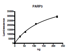 Active human PARP3 (GenBank Accession No. NM_001003931), full length with N-terminal GST tag, MW = 87 kDa, expressed in a Baculovirus infected Sf9 cell expression system.