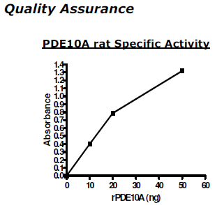 Active rat PDE10A GenBank Accession No. NM_022236), amino acids 449-end with Nterminal GST tag, MW=66 kDa, expressed in a Baculovirus infected Sf9 cell expression system.