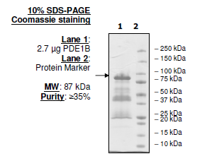 Rat PDE1B (GenBank Accession No. NM_022710), full length with N-terminal HIS-GST tag, MW= 89kDa, expressed in a Baculovirus infected Sf9 cell expression system.
