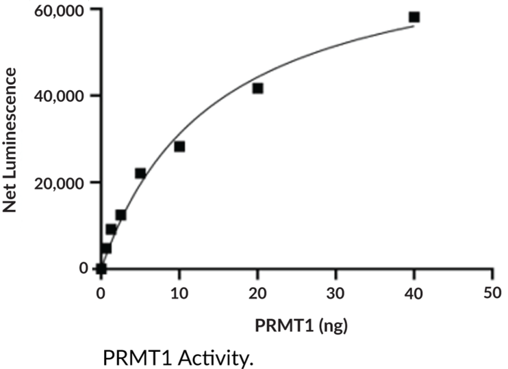 Protein Arginine Methyltransferases (PRMTs) are S-adenosyl-L-methionine-dependent enzymes that catalyze post-translational modification of arginine residues by methylation in three different ways: monomethylation, symmetric dimethylation, or asymmetric dimethylation at terminal arginine guanidino nitrogen atoms. Class I PRMTs catalyze arginine monomethylation and asymmetric dimethylation. PRMT1 is a class I arginine methyltransferase that methylates arginine residues at a number of glycine and arginine rich regions (GAR motifs) in proteins including histone H4 at arginine 3.Synonyms: Interferon receptor 1-bound protein 4, Protein Arginine Methyltransferase 1. Purity: >35% estimated by SDS-PAGE. Source: Active recombinant N-terminal GST-tagged protein expressed in E. coli. Amino Acids: 2-371 (full-length). MW: 69.2 kDa. UniProt Accession #: Q99873.