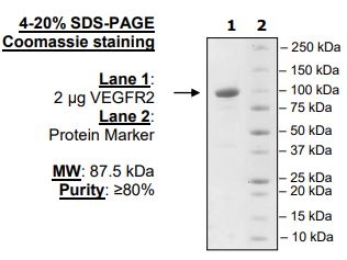 Active human VEGFR2 GenBank Accession No. AF035121), (a.a. 805-1356) with N-terminal GST tag, MW=87 kDa, expressed in a Baculovirus infected Sf9 cell expression system.